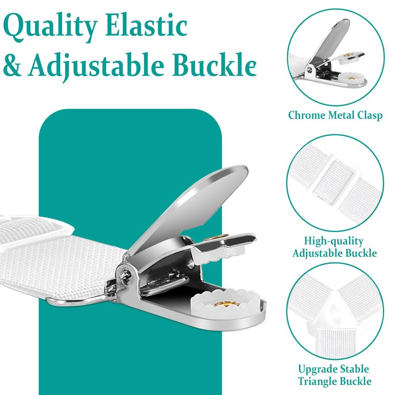 - ✅【High Quality Material】Tuyeabc bed sheet straps are made of sturdy chrome metal clips; Wider and durable elastic bands provides stable and stronger grip; Built-in plastic clenching system which will grip your bed sheets firmly and protects fabric from harm; elastic bands keep desired tension long-term, metal lock buckle allow to adjust the length you need.