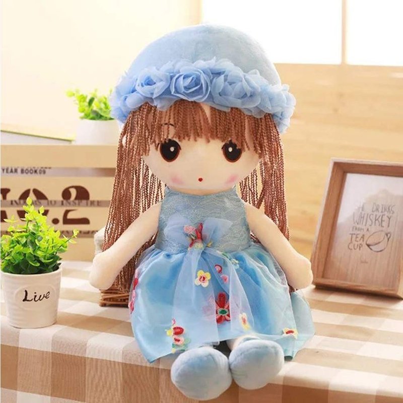 The Tvoip Phyllis doll is made with soft material, making her ideal to cuddle with. She comes with a Blue cute dress, brown hair ,embroidered face, and a blue hat.