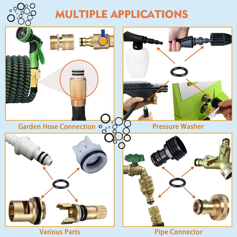 - {O RING APPLICATION}: Rubber o-rings kit used for plumbing faucet repair,pressure washer hose,machinery bearings, pumps, boats, oils, gas control valve,air or Gas water fitting leak seal.
