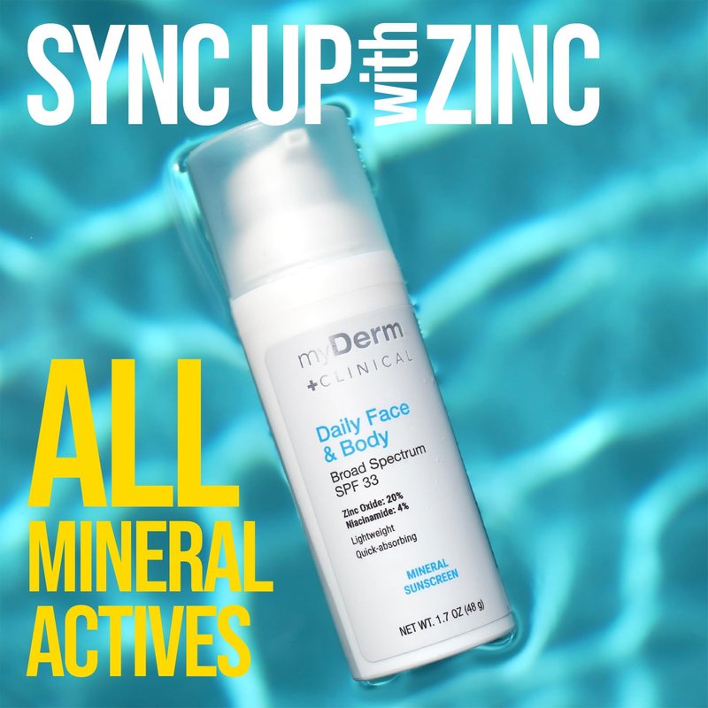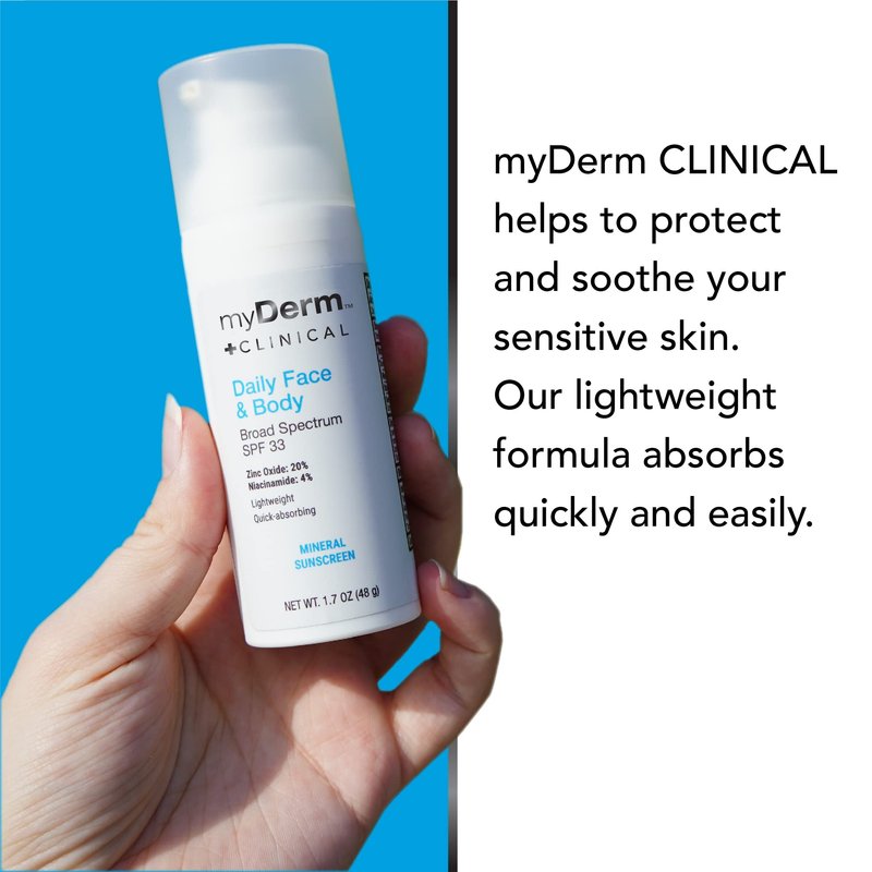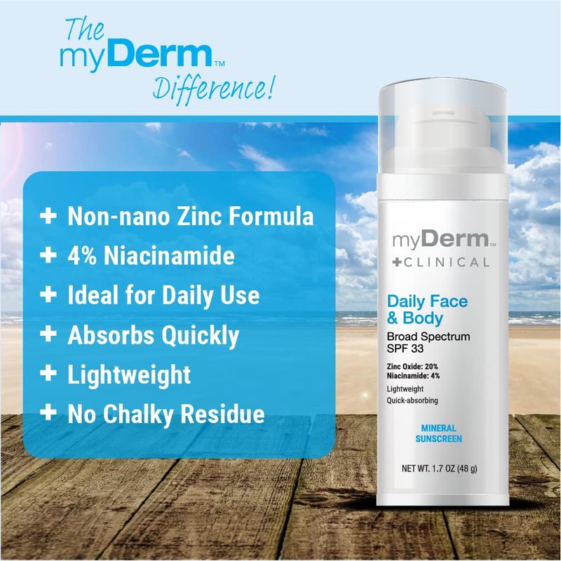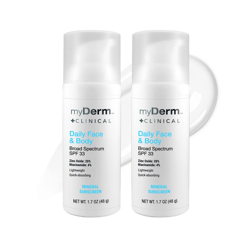 Twin Pack - myDerm CLINICAL Daily Face & Body SPF 33 Mineral Sunscreen Lotion (2 Pack)