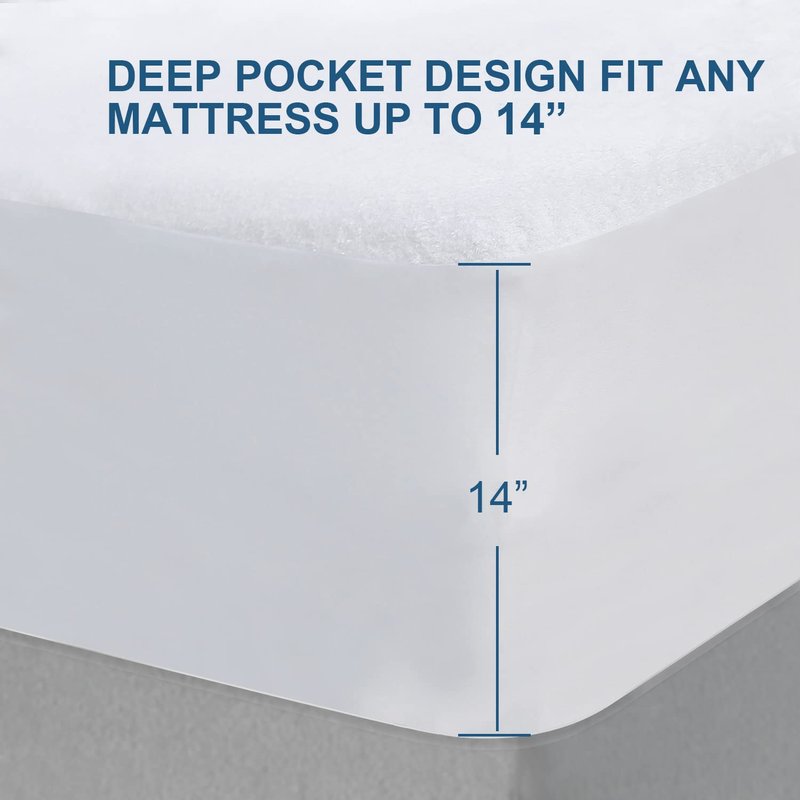 - Strong Elastic and Snug Fit: Fitted cover style design with strong elastic all around, that can make your mattress protector stay in place.And this twin xl size mattress protector side skirt can fit mattresses height up to 14 inch.