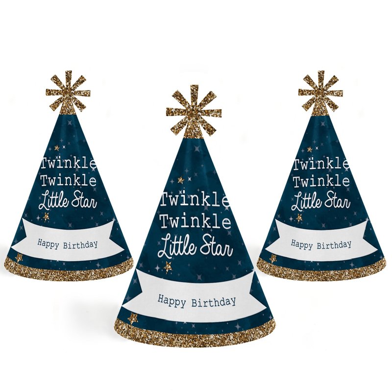 - FUN BIRTHDAY PARTY SUPPLIES: Twinkle Twinkle Little Star cone party hats are perfect for your moon and stars party. This set of cute party hats will help you take memorable party photos. They are sure to be enjoyed by all your friends and family - and the guest of honor!