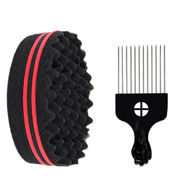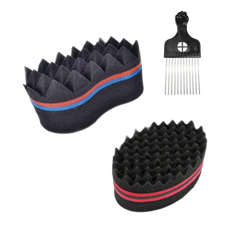 Twist Hair Sponge Set, Twist Hair Sponge Brush Metal Hair Pick Comb Hair Twister Tool for Afro Women Men Black