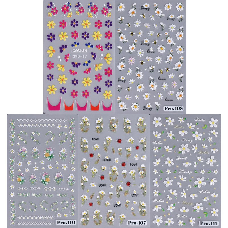 - 【Widely Used】These Daisy nail art stickers decoration are suitable for professional nail salons and home use. These nail decals is very suitable for 3D nail art, glitter nail art, arts & crafts, holiday decorations, face, body, nails, cell phone case, invitation card and etc. Nail decals are best gifts for nail lovers.
