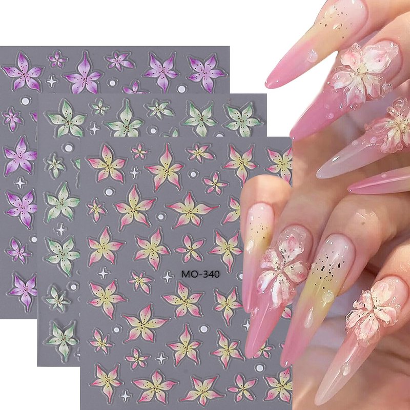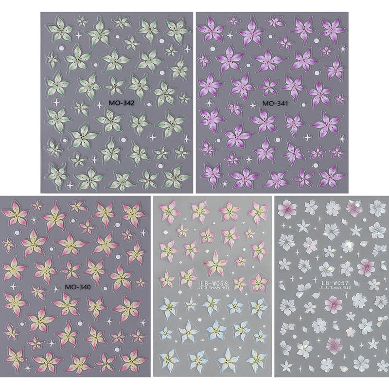 Tyuimhx 5 Sheets Flowers Nail Art Stickers Decals 5D Embossed Self-Adhesive Lily Flowers Nail Stickers Blue Pink White Green Purple Floral Nail Decals Supplies for Women Girls DIY Nail Tip Decorations