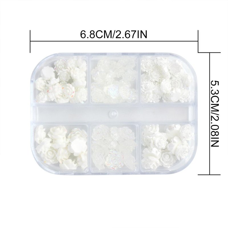 - 【Package Contents】You will get 6 grids nail charms(inclued white & aurora clear flowers). Suitable for most natural and fake nails, you can do a variety of bold and stylish nail designs.