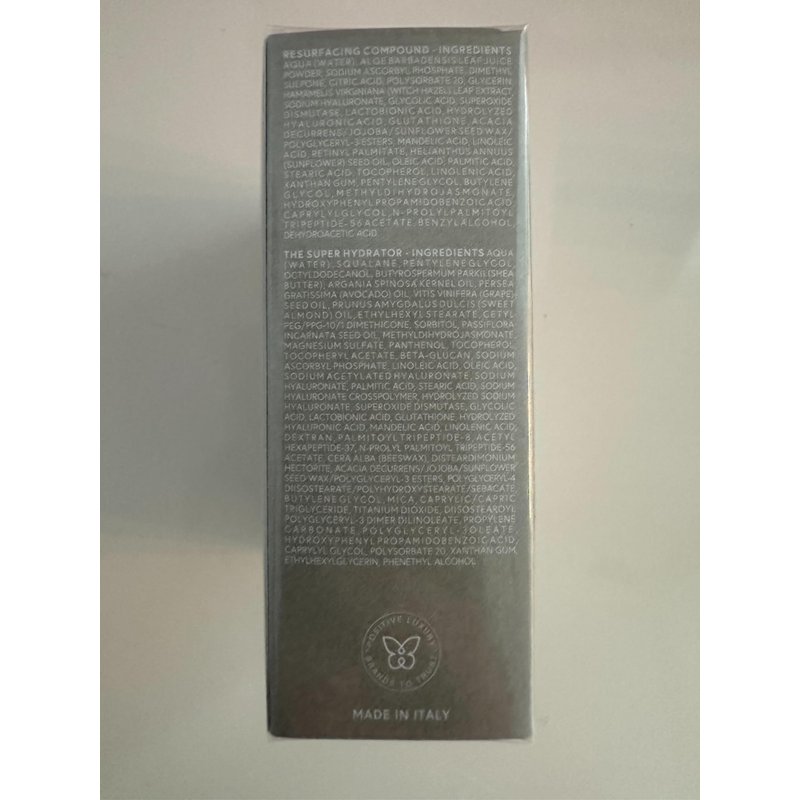 - RESURFACING COMPOUND: A facial serum that replaces over 6 products with a novel blend of antioxidants, peptides, and AHAs to optimize the skin’s natural renewal process to combat the look of imperfections such as fine lines, uneven skin tone and more