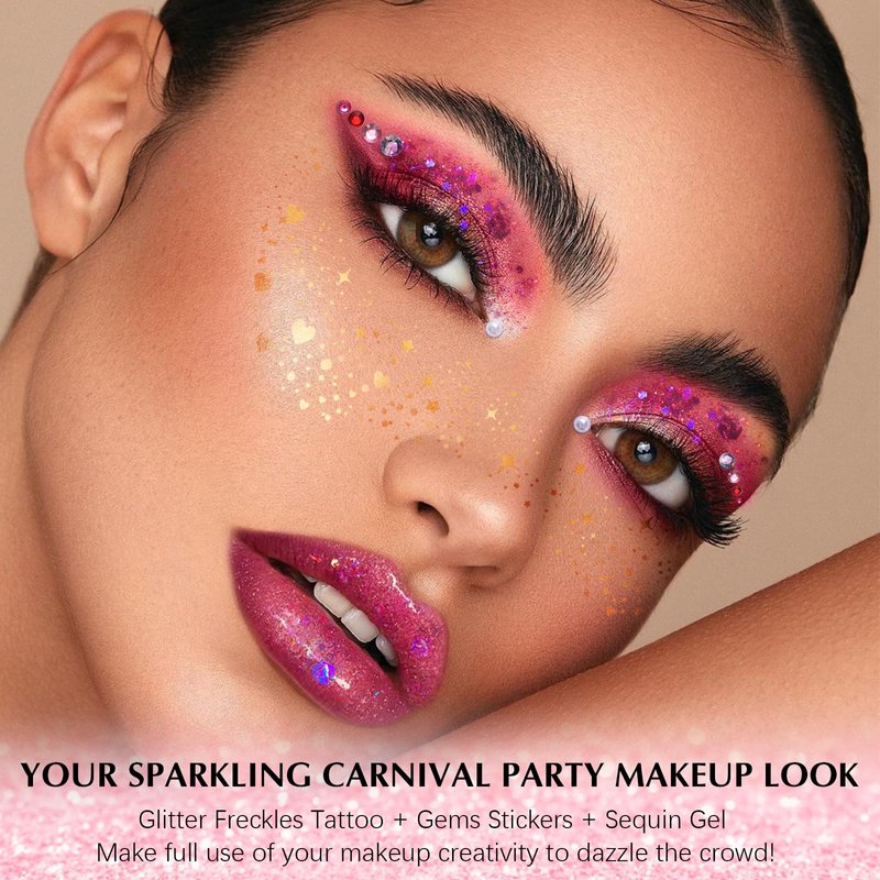 3.You can use the Glitter Gel, Glitter Freckles and Face Gem Stickers together or separately to create endless makeup styles.