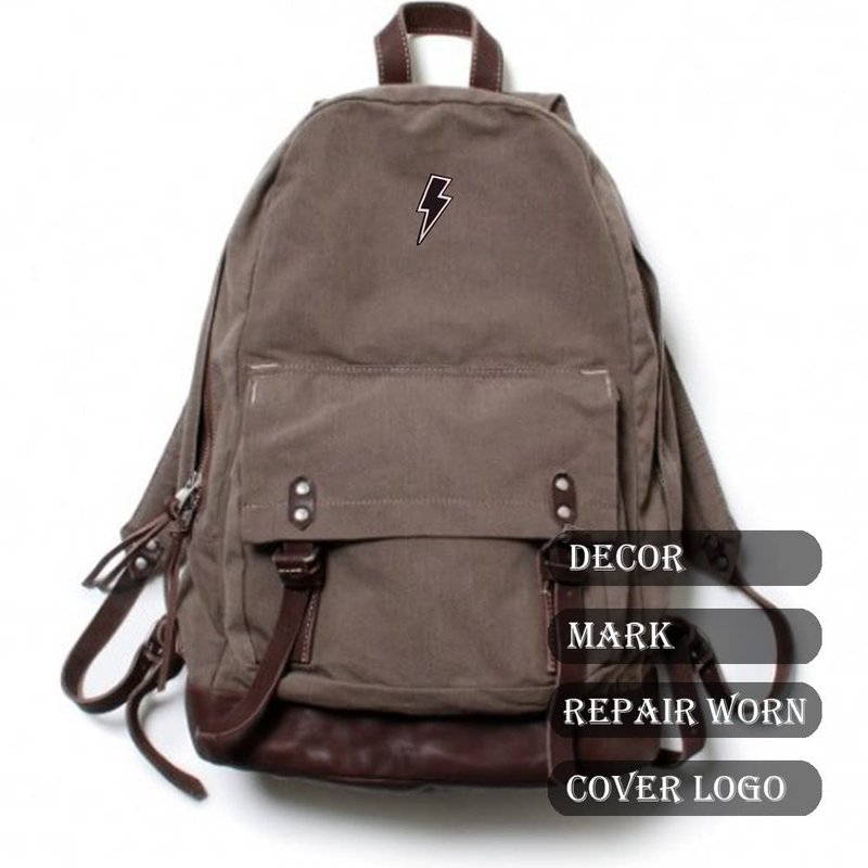 - This set iron on patches for jeans include 3pcs same design lightning patches for jackets. This set embroidery iron on backpacks patches is good for adult and kids clothing. Especially Jeans, Shirt, Pants, Hats; Front side of patch is polyester fabrice, rear side is covered with hot-melt adhesive film.