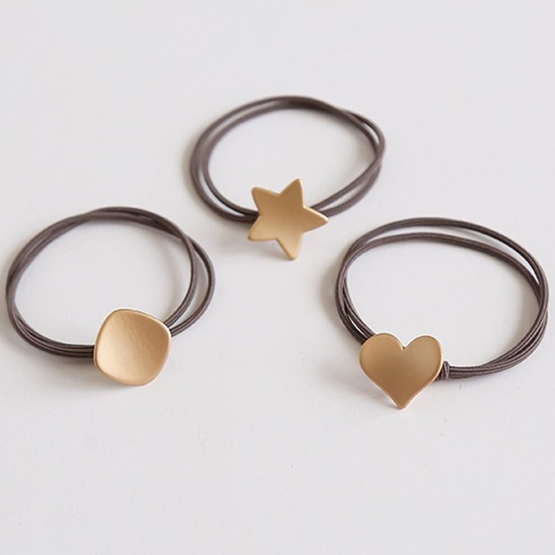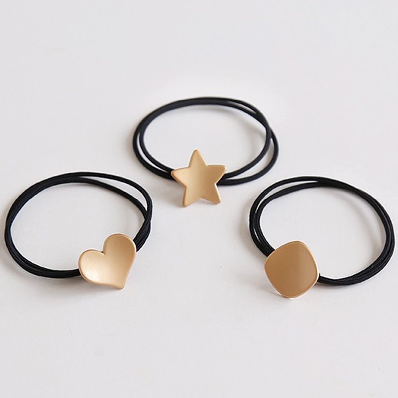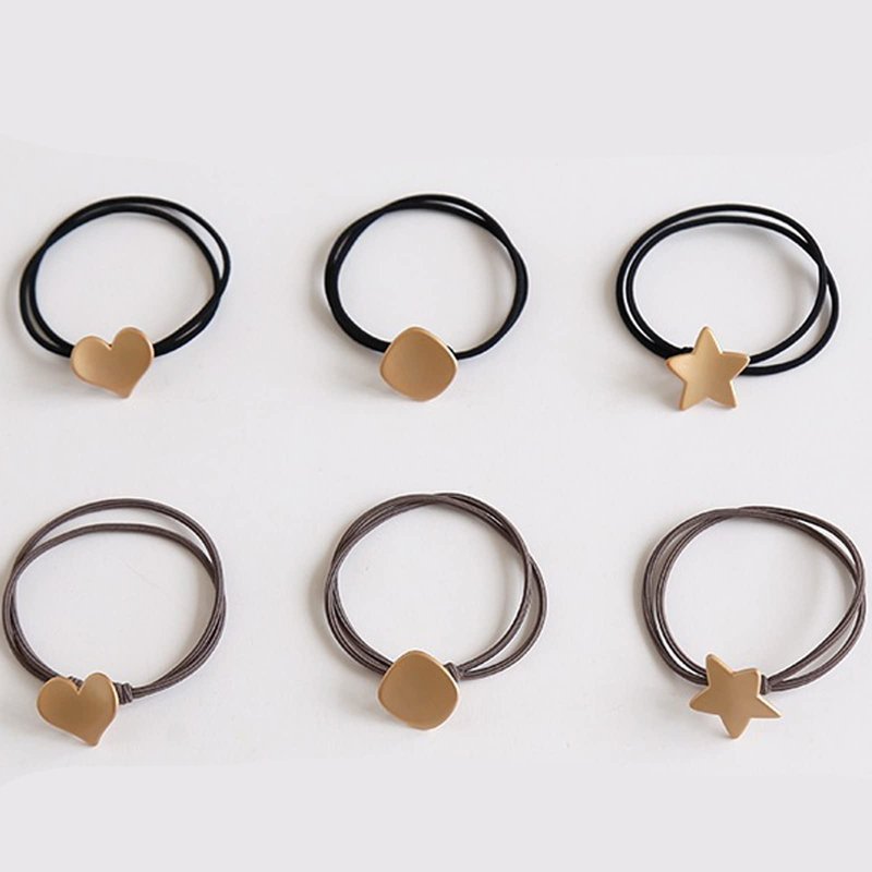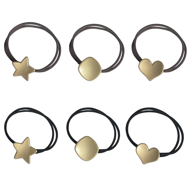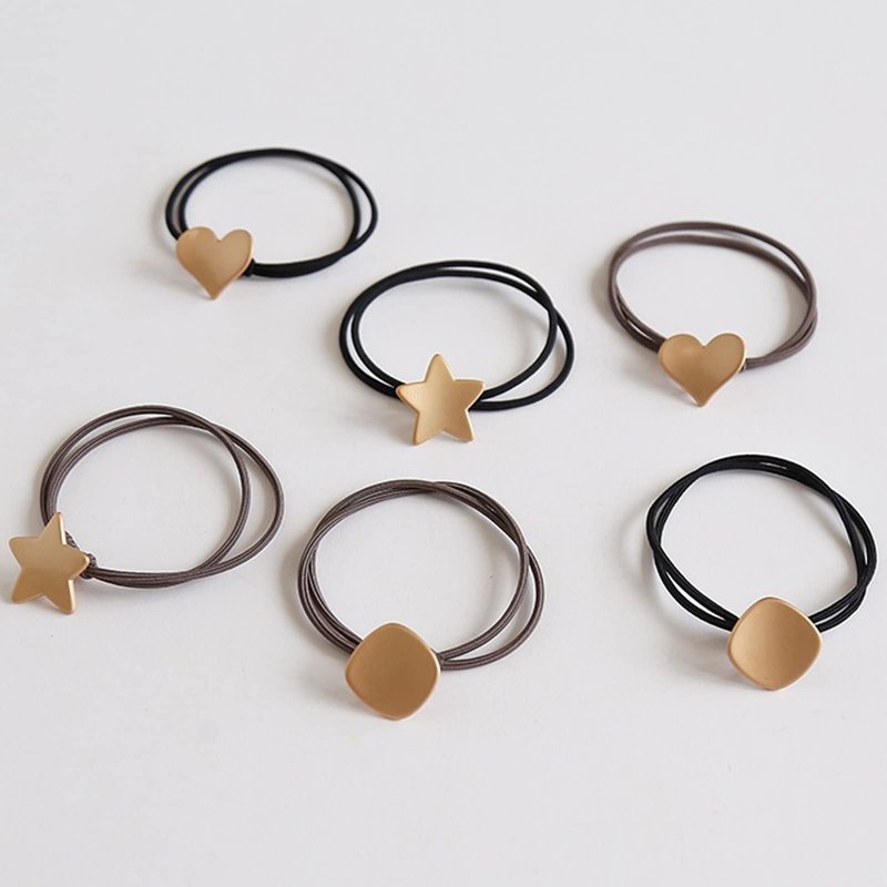 UaiUya 6pcs Metal Hair Ties,Hair Ties Bracelets,Womens Elastic Hair Tie With Star Heart Square