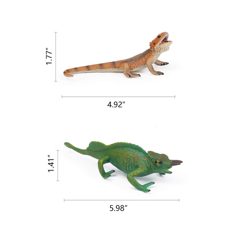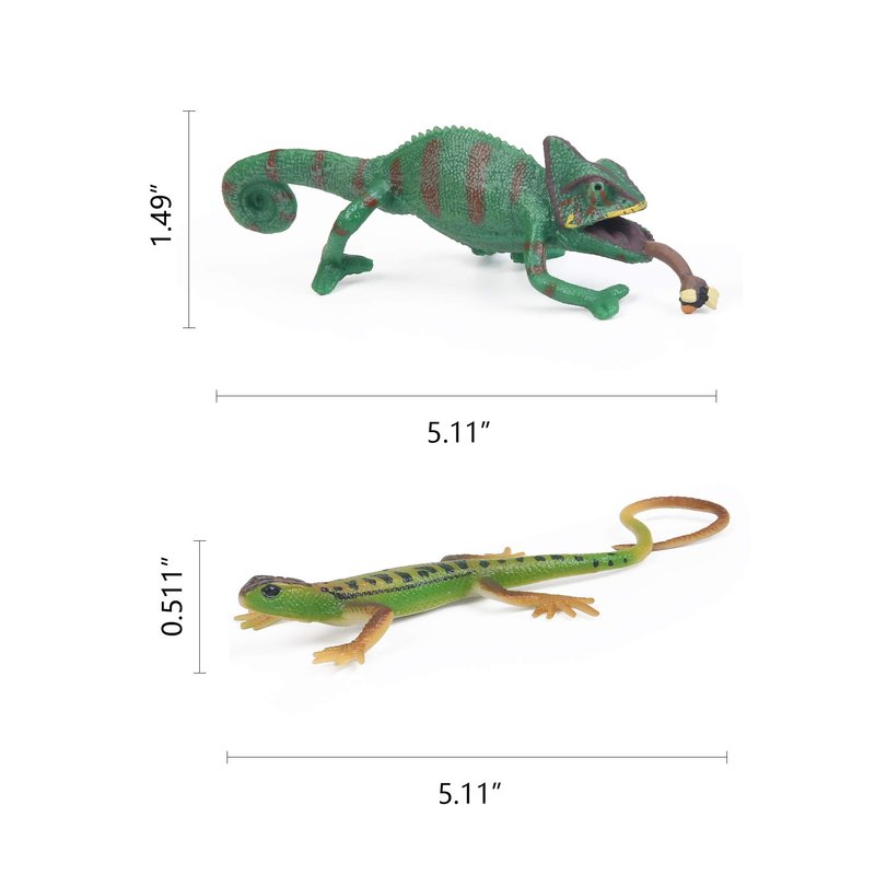 - This Lizard figures set is phthalate-free and thoroughly safety tested to safeguard your child's health. Package include: 2 x Gecko figurines, 4 x Lizard figurines, 2 x Chameleon figurines. Totally 8 pieces.