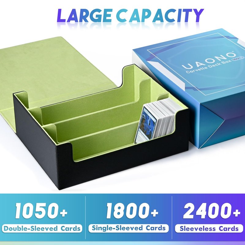 - ๐ฆ๐๐ฝ๐ฒ๐ฟ ๐๐ฎ๐ฟ๐ด๐ฒ ๐๐ฎ๐ฝ๐ฎ๐ฐ๐ถ๐๐ ๐๐ฎ๐ฟ๐ฑ ๐๐ผ๐ - This card storage box is large enough to store 2400+ sleeveless trading game cards easily. Also suitable for holding 1050+ double-sleeved cards or 1800+ single-sleeved cards, but not with top loaders sleeves and magnetic card holders. SURPRISE GIFT!!! Comes with 10 card dividers .