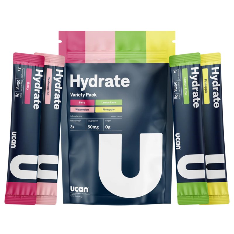 UCAN Hydrate Electrolyte Drink Mix (Variety Pack, 12 Stickpacks) Sugar-Free, Keto-Friendly, Vegan, Non-GMO, Gluten-Free Electrolyte Powder with Potassium & Magnesium for Runners & Athletes