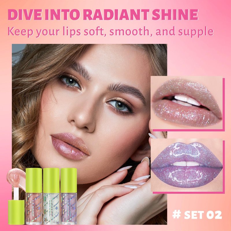 UCANBE 3 Reflective Color Lip Glow Oil - Instense High-moisture Lip Oil (Pink/Crystal/Mermaid), Luxurious Non-Sticky Mositurizing Lip Top Gloss for All-Day Wear and Comfort