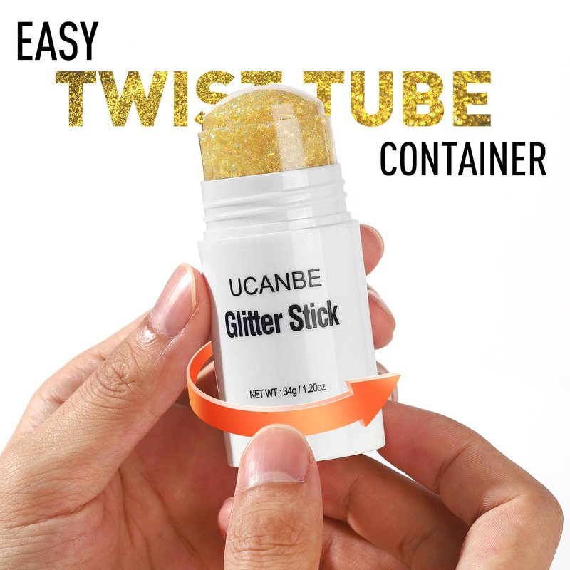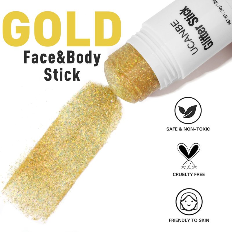 UCANBE Gold Body Glitter Stick for Singer Concerts Music Festivals, Face Glitter Makeup for Face Body Hair Eyes & Lips, Chunky Glitter Sparkling Mermaid Sequins for Women 1.2OZ