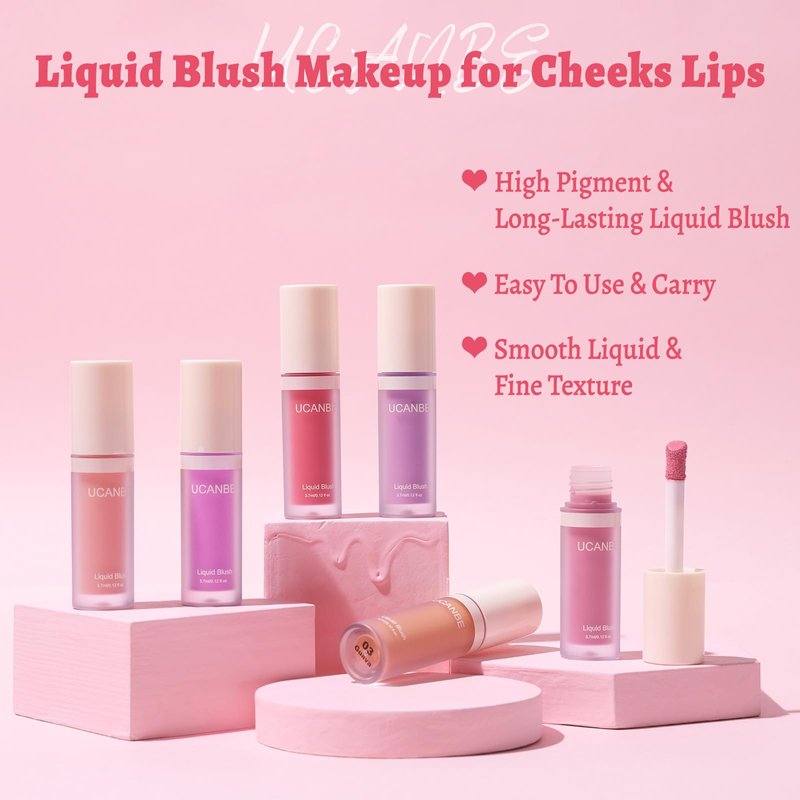 - UCANBE Liquid Blush Wand - Featuring a lightweight, long-lasting, and highly pigmented formula, this blush enhances your skin tone with natural hydration and radiance. It can also be used on the lips. Compact and portable, it comes with a small puff for easy touch-ups anytime, anywhere