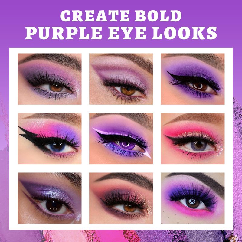 Product Features: Ultra pigmented with 15 shimmer matte satin metallic purple hue shades Vibrant bold colors with smooth finishes Waterproof, long-wearing and lightweight formula Delivers bold color and stay put all day without fading. Rich color pay off and a little goes a long way Amazing Blendability and soft silky smooth texture sweat proof,resistant to sweat, fading, and streaking Easy to use and apply, easy to remover and no color stain Cute Packaging and Easy to carry, meet all your demands