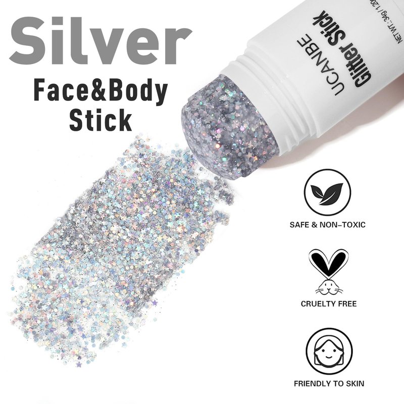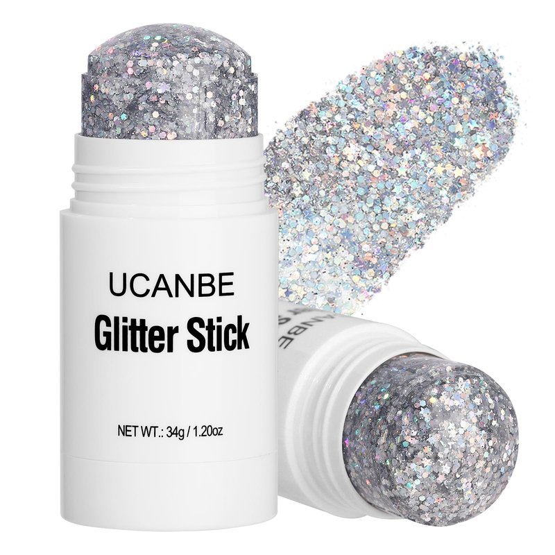 UCANBE Silver Body Glitter Stick for Singer Concerts Music Festivals, Face Glitter Makeup for Face Body Hair Eyes & Lips, Chunky Glitter Sparkling Mermaid Sequins for Women