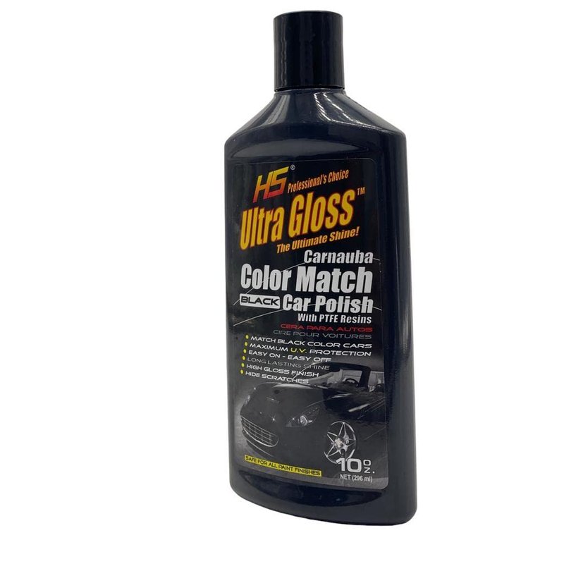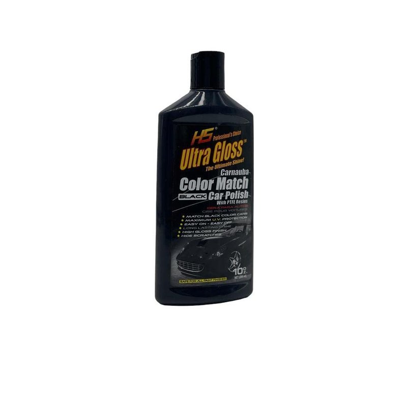 "Get a Showroom Shine with HS UltraGloss Carnauba Color Match Car Polish! Say Goodbye to Swirls and Scratches!" Transform your vehicle with our technologically advanced formula that fills-in swirls and light scratches to blend seamlessly with your car's original color. Our unique sealer polish with PTFE polymers enriched formula provides a super high gloss finish that prevents water beading for months, keeping your vehicle looking like it just came off the showroom floor. Easy to use with simple directions, just wash your car with HS Car Wash, dry completely, shake the bottle well, pour a small amount on a soft cloth, and apply evenly to the surface area. Allow it to dry to a small haze and buff off. Get ready to turn heads with the incredible shine of HS UltraGloss Carnauba Color Match Car Polish. Try it now!