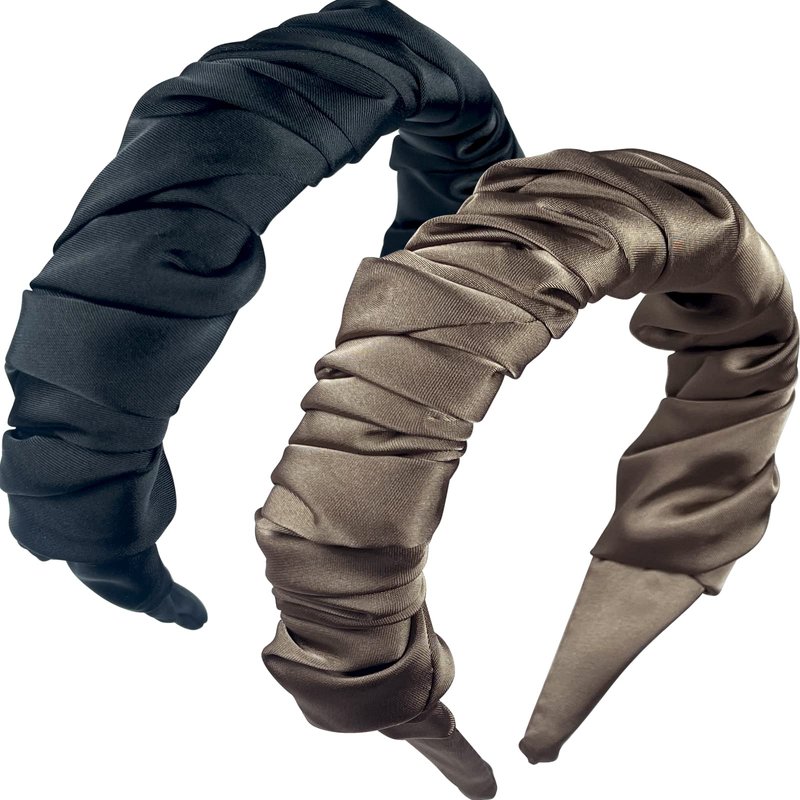 Ruched Satin Headband,Ruffled Wide Headband, Fashion Folds Satin Turban Headbands Headwear Barrette Styling Tools Accessories for Girls and Women By UDeBe 2PCs Coffee+Black