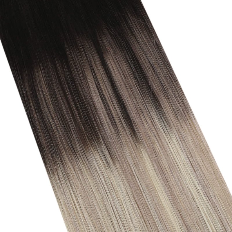 Ugeat 24inch Tape in Human Hair Extensions Ombre Tape in Hair Extensions Real Human Hair Black Ombre Ash Blonde Mix Platinum Blonde Balayage Invisible Tape in Extensions for Women 20Pcs 50G