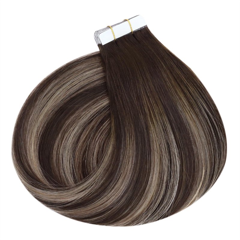 Ugeat Tape in Hair Extensions Human Hair Balayage Double Sided Tape in Hair Extensions Chocolate Brown with Ash Blonde Balayage Tape in Extensions Human Hair 18inch 50G 20Pcs