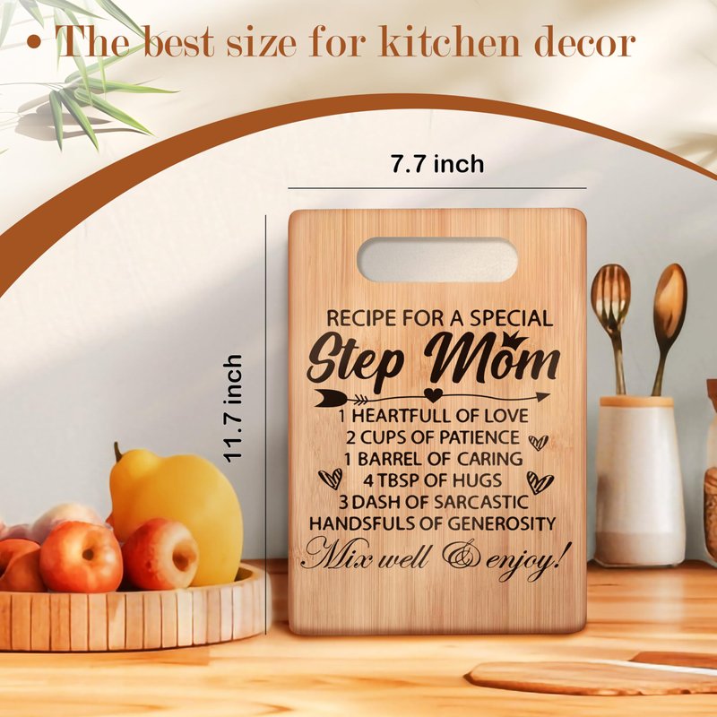 uinwk Step Mom Gifts, Step Mom Gifts from Daughter, Step Mom Mother Christmas Birthday Gifts, Bonus Mom Gifts, Recipe for a Special Step Mom Cutting Board, Bamboo Cutting Boards for Kitchen