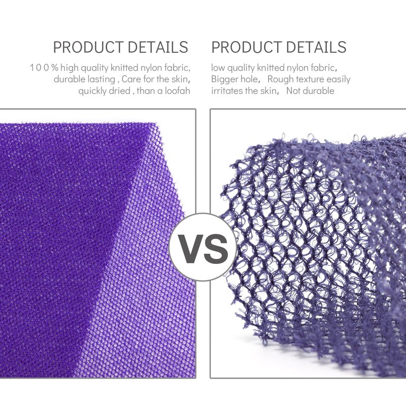 - 【More efficient cleaning】The exfoliating body net is rougher than a ordinary bathing cloth, but soft enough for daily body cleansing.easy for removing dead skin, dirt, oil, and eliminating impurities, unclogging pores, suitable for women and men of most ages to use