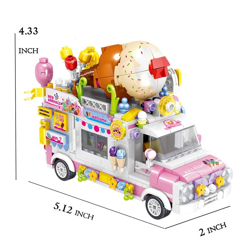 Ulanlan Ice Cream Truck Building Set for Age 8 9 10 11 12 Year Old Kids, Mini Blocks STEM Toy Building Sets for Girls, Girls Building Block Construction Kits, Best Birthday Gift for Girls 593pcs