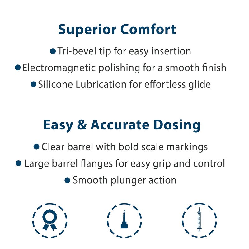 - ACCURATE DOSING: Bold dose unit markings and large barrel flanges for accurate dosing and easy grip and control.