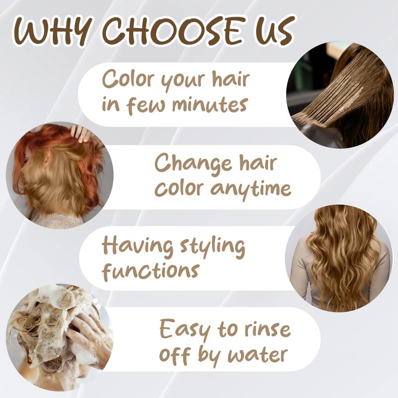 - ✨Instant hair coloring: Change your hair into different colors,from brown to blonde with diy hair color dyes just in seconds, that you can coverage new color of your color treated hair without visit salon, while prevent your hair and scalp from salon-made damage.