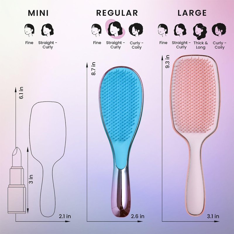 - 🔥PERFECT FOR ALL HAIR TYPES! – One brush rules them all! Our hair brush for thick hair, fine, curly, straight, natural, extensions, and wigs. The perfect wet brush Created for fine, fragile hair, this detangling hairbrush features innovative teeth technology that can cut detangling time in half - wash day just got easier.
