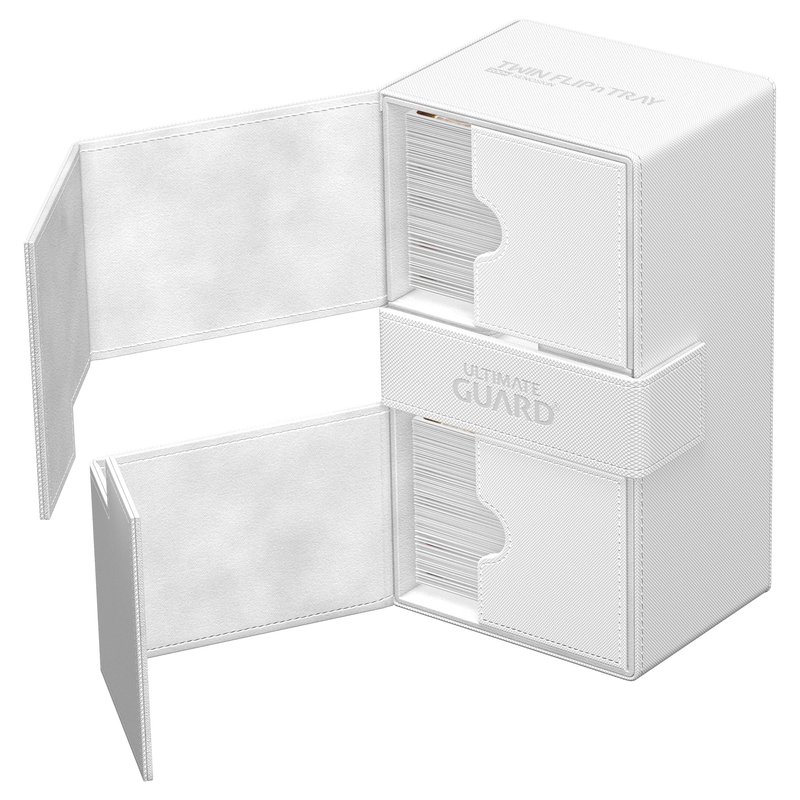 Ultimate Guard Flip 'n' Tray 200+, Deck Case for 200 Double-Sleeved TCG Cards + Dice Tray, White, Independent Magnetic Closure & Microfiber Lining