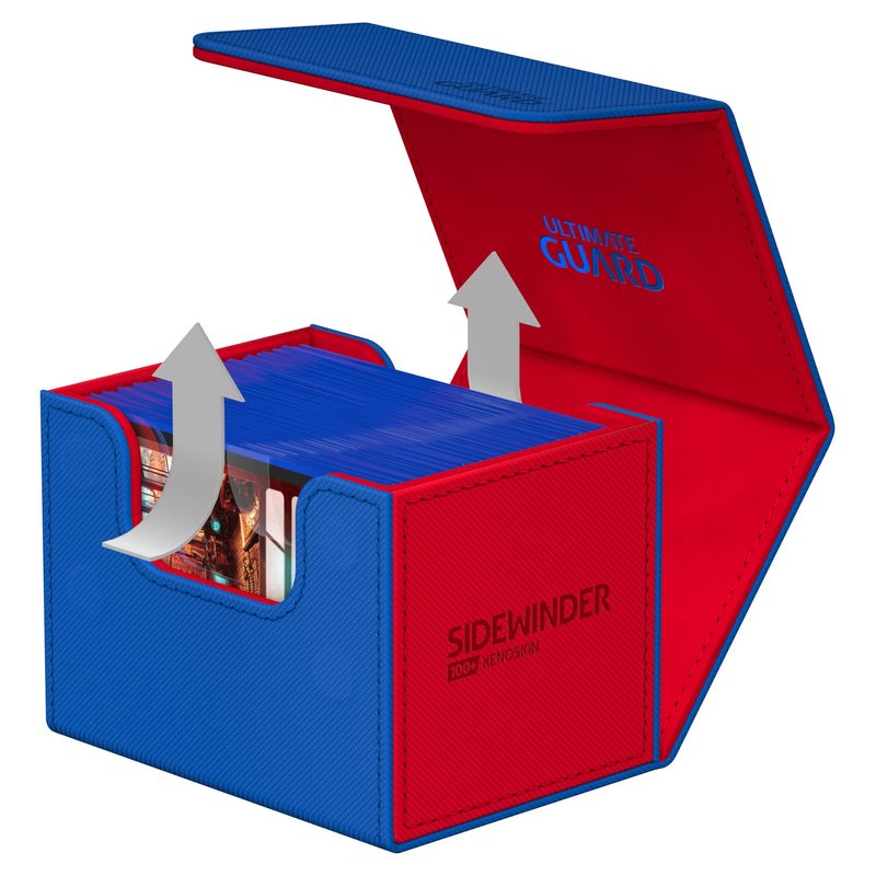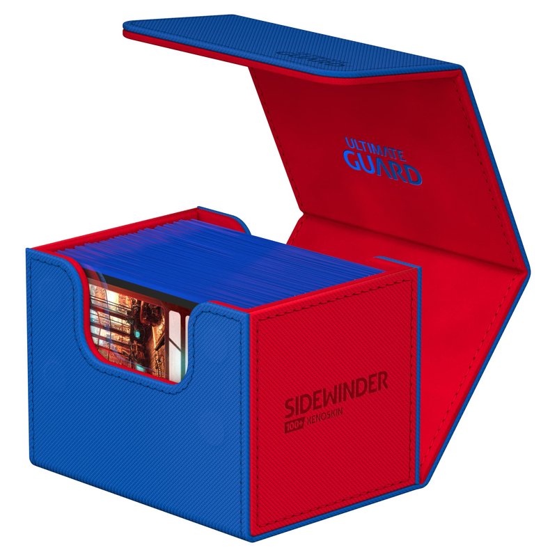 The Ultimate Guard Sidewinder 100+ SYNERGY is built to house and keep safe at least 100 double sleeved cards. The Sidewinders are available in 5 different color combinations: So whether you're a white/blue player striving for peace or you identify more with green/black bloodthirsty zombies, we're sure you'll find the perfect box for your deck.
