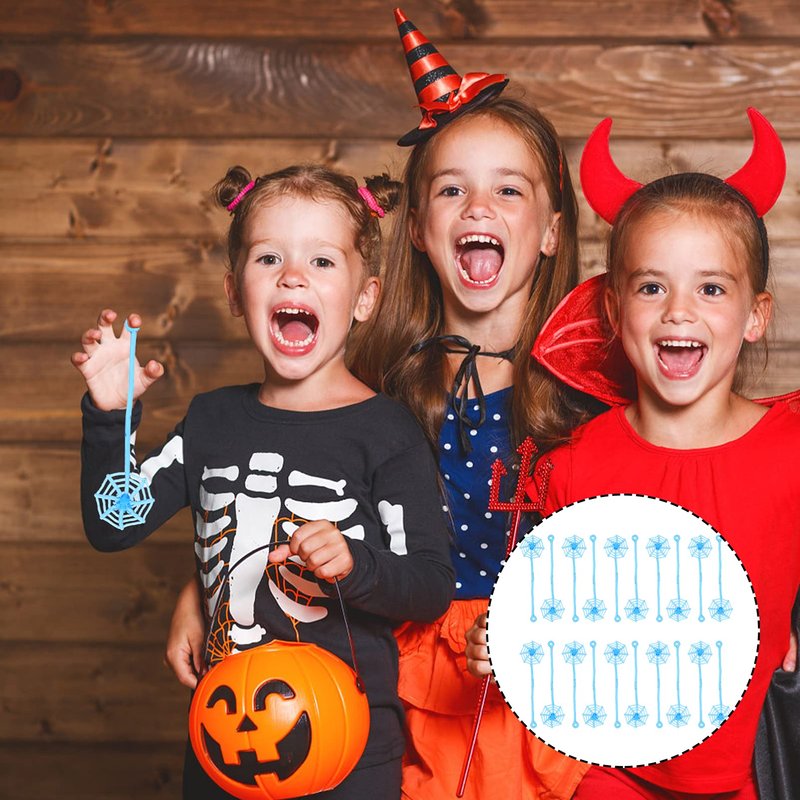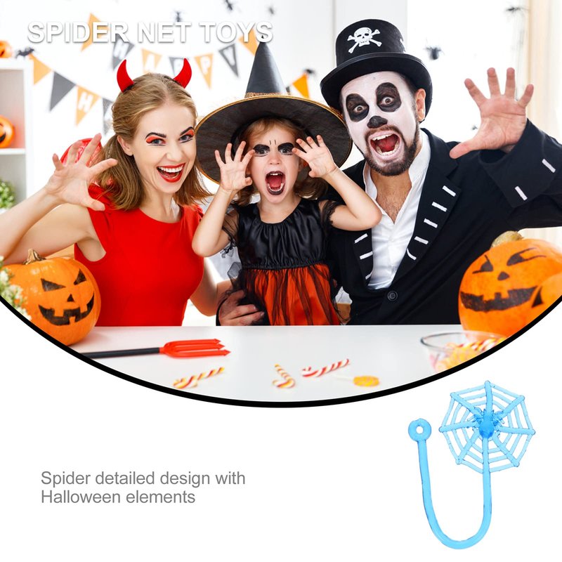 ULTNICE 20Pcs Stretchy Sticky Toy Halloween Prank Toys Spider Net Design Wacky Fun Stretchy Sticky Spider Web Halloween Playthings Halloween Party Favors for Kids (Blue)