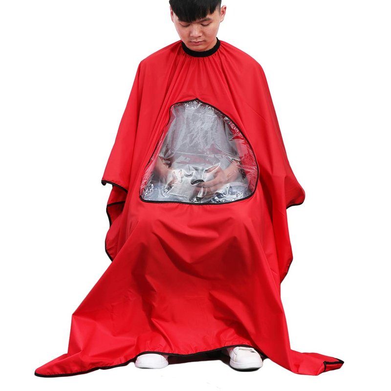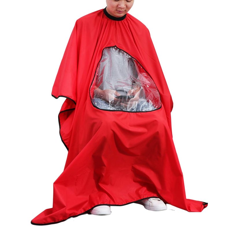 ULTNICE Salon Home Barbers Hairdressing Cape Gown with Viewing Window for Hair Cutting 62.9 * 57"(Red)
