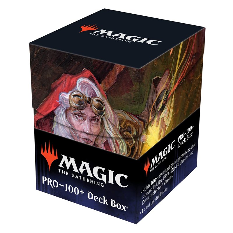 The 100+ Deck Box features vibrant, full-color artwork from Magic: The Gathering and includes a matching deck divider. Made with archival-safe, non-PVC, rigid polypropylene materials, you can store up to 100 double-sleeved cards with confidence. The self-locking lid keeps your cards securely stored when not in use, while also offering easy access. Sized for standard size trading cards.