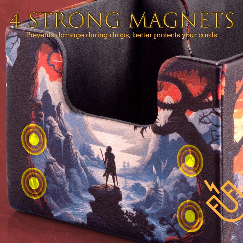 - Secure Magnetic Closure: Engineered with 4 robust magnets, our card box ensures a snug fit, safeguarding your valuable collection from dust and damage.