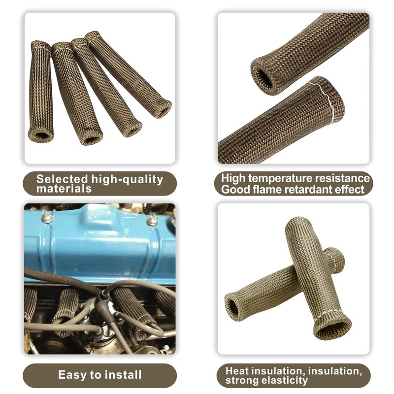 - 【Easy Installation】:Spark Plug Covers are easy to slip in the boot heat protector on to each boot of the spark plug wire. Just slip the large end (with the sewn stitching) over the boot. Then carefully slip the ringed end over the boot that connects to the spark plug.