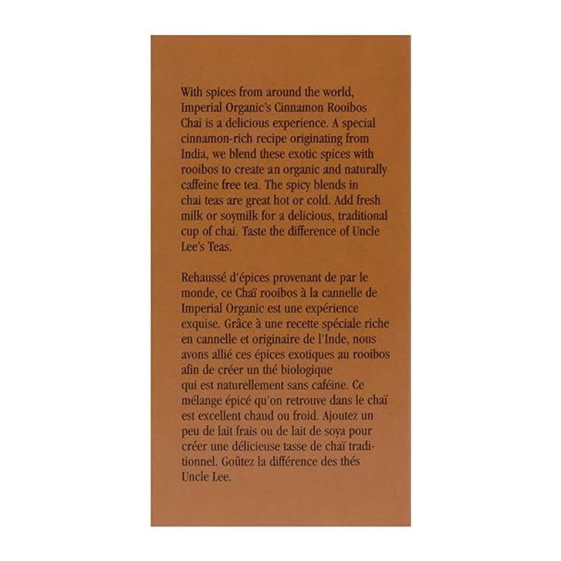Uncle Lees Tea Imperial Organic Chai Cinnamon Rooibus Caffeine Free 18 Tea Bags
