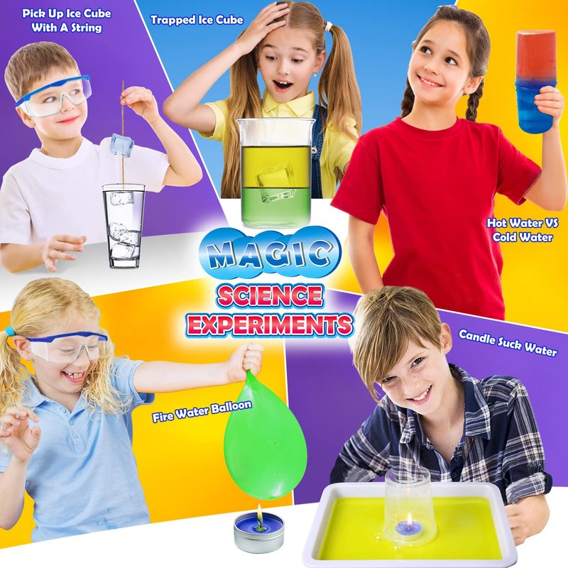 - OVER 30 REAL STEM LEARNING - Build and erupt a volcano, 2 color lava lamp, DIY your own bouncy ball. Change the color of flower, Blow balloon with water, make pop rainbow rain and much more.