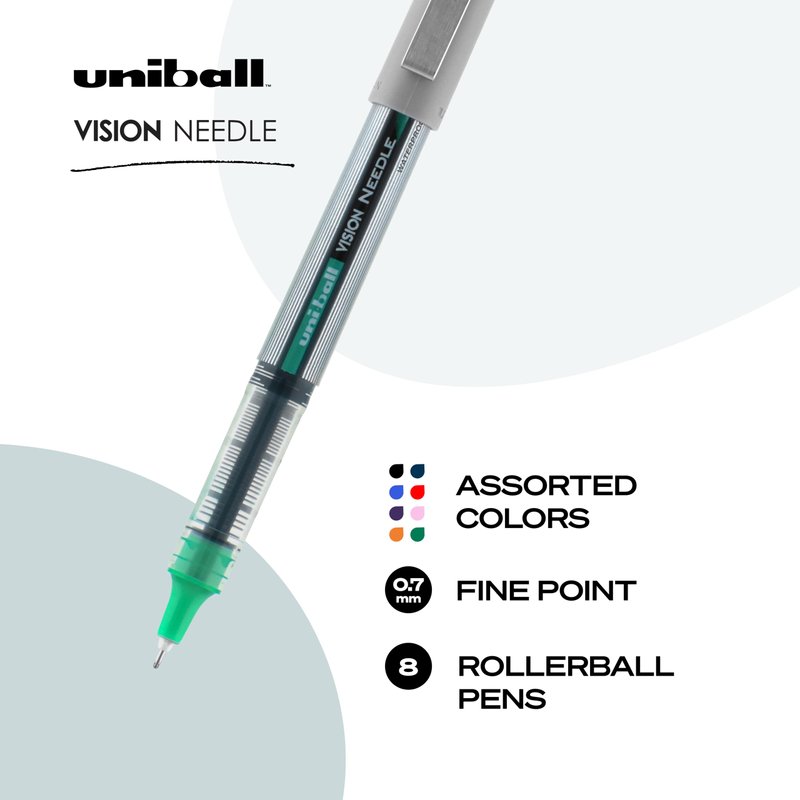 uni-ball 1734916 Vision Needle Roller Ball Stick Liquid Pen Assorted Ink Fine 8/Set