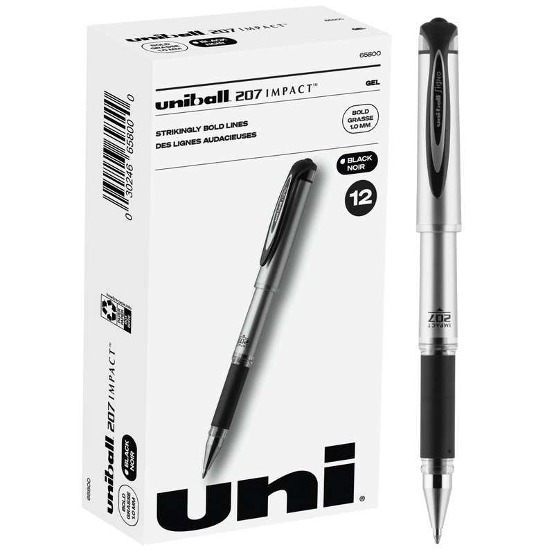 Uniball Signo 207 Impact Stick Gel Pen, 12 Black Pens, 1.0mm Bold Point Gel Pens - School and Office Supplies, Japanese Ink Pens, Journaling Pens, Smooth Writing Pens, Teacher Pens