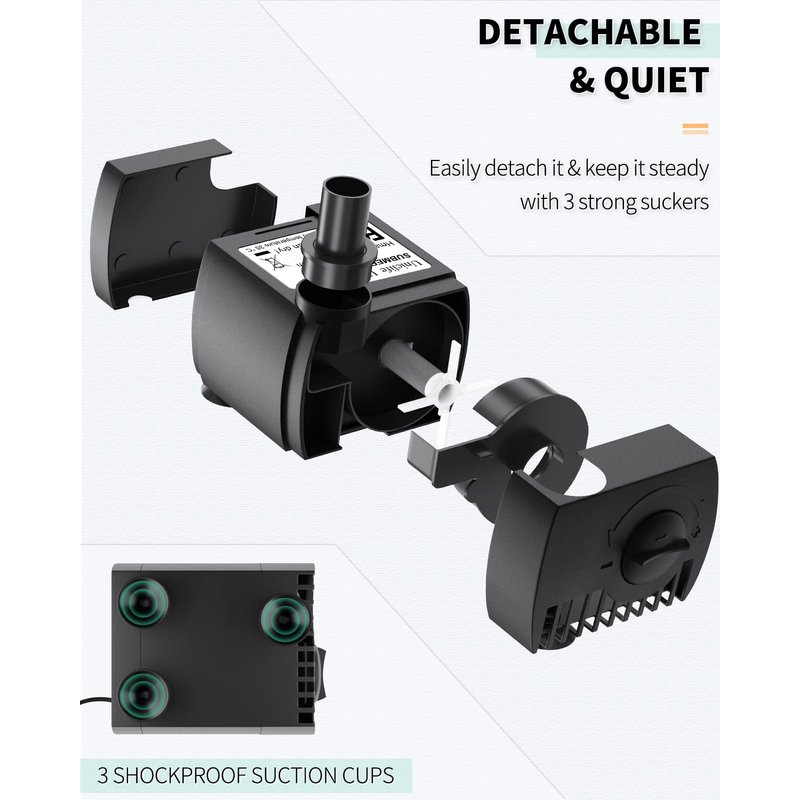 - Detachable and Quiet: Easy to detach the pump and clean it without using any tool. And the 3 strong suction cups hold the pump steadily and keep it quiet during work.