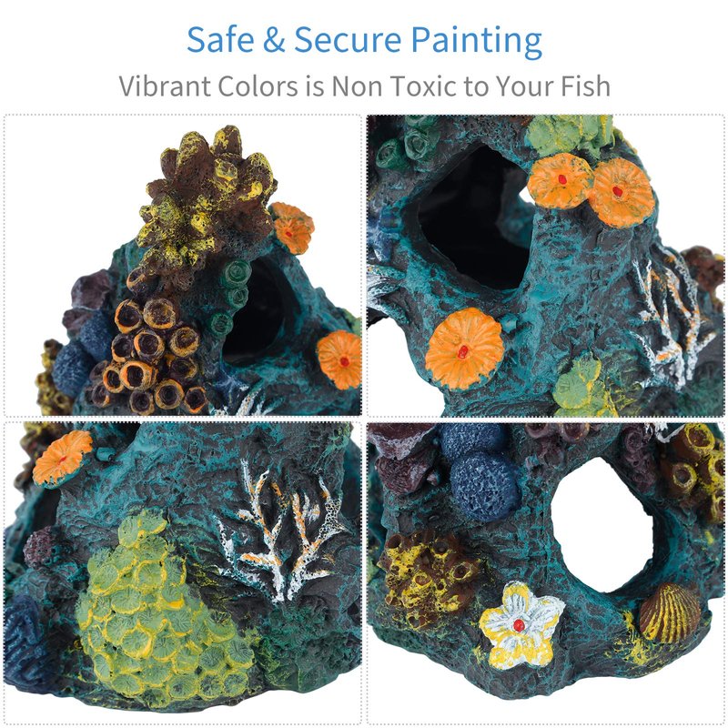 Uniclife Aquarium Decorations Resin Coral Rock Mountain Cave Fish Tank Decor Ornaments Fish House for Betta Rest Hide Play Breed