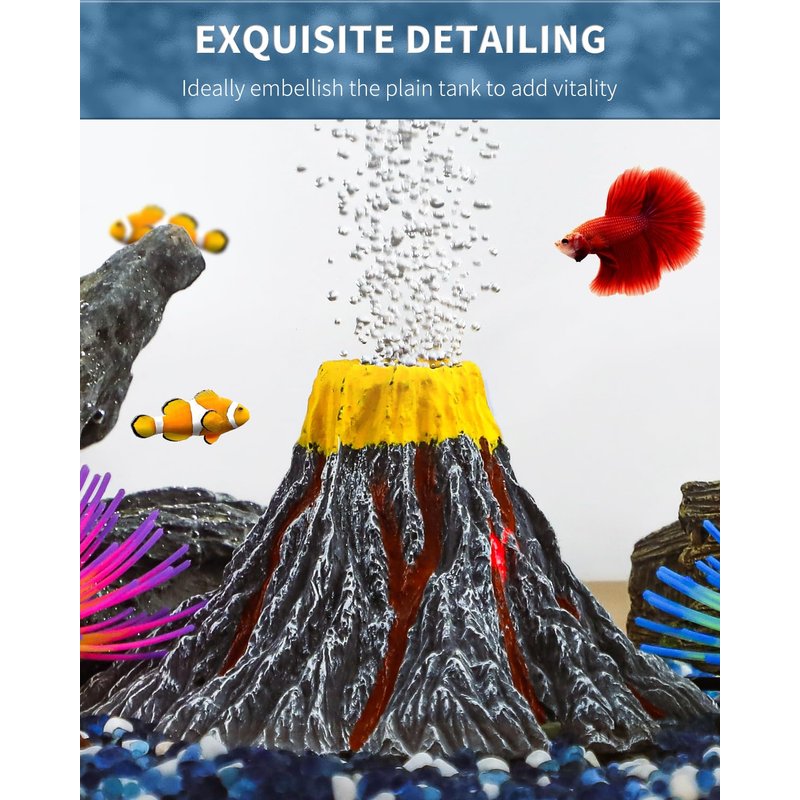 - Hand-painted vivid volcano is made of resin which is safe, non-toxic, eco-friendly and totally harmless to your fish. Volcano Size: 6.7 x 4 inch (D*H)