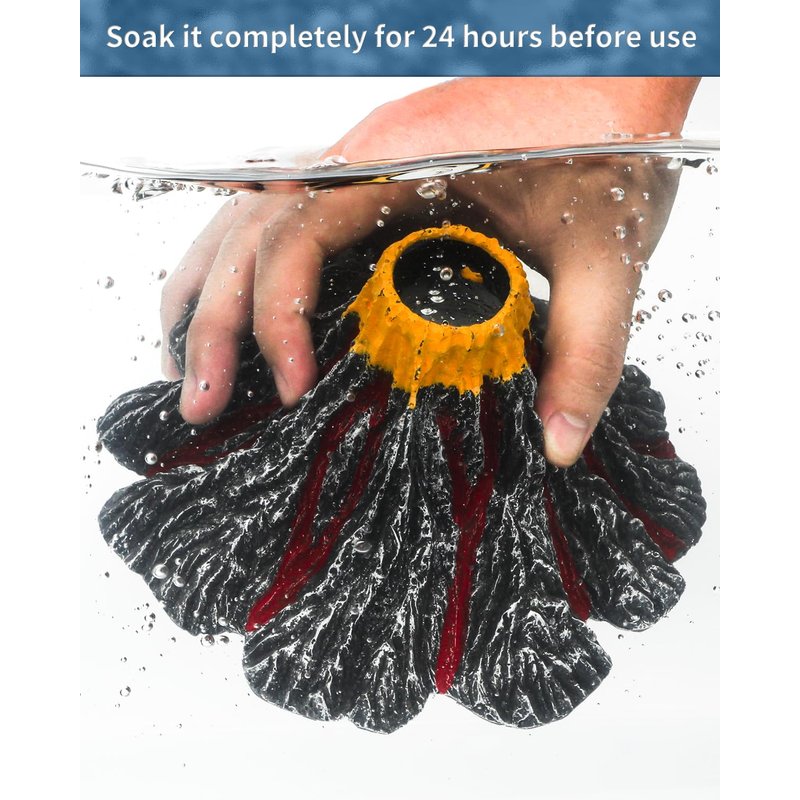 Please soak the volcano in water for a while before putting it into your fish tank.