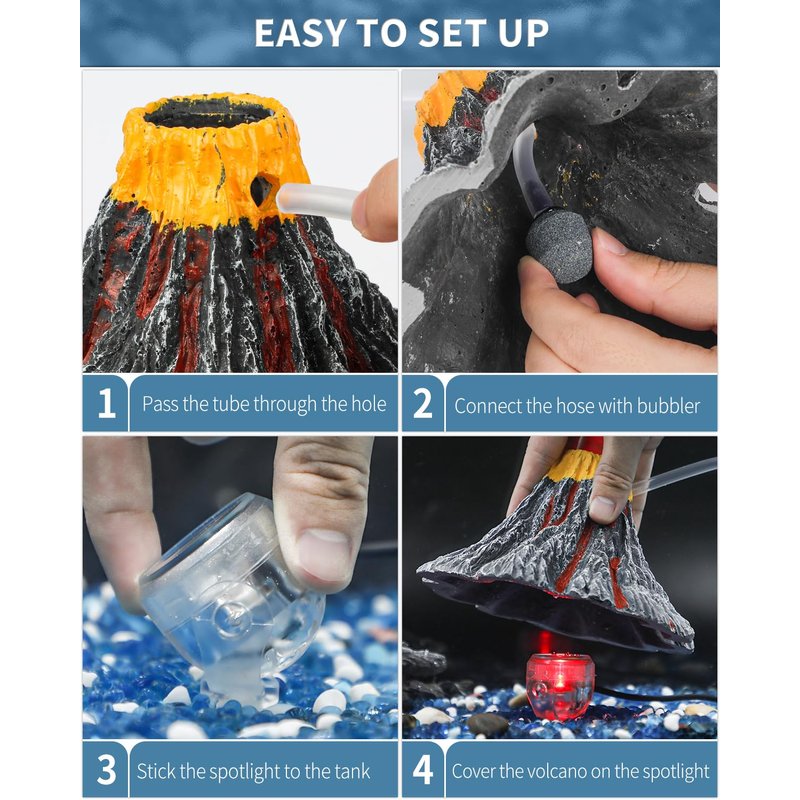 - AIR PUMP NOT INCLUDED! What You Get: Resin volcano ornament, Red LED light, power adapter and 1 air stone.