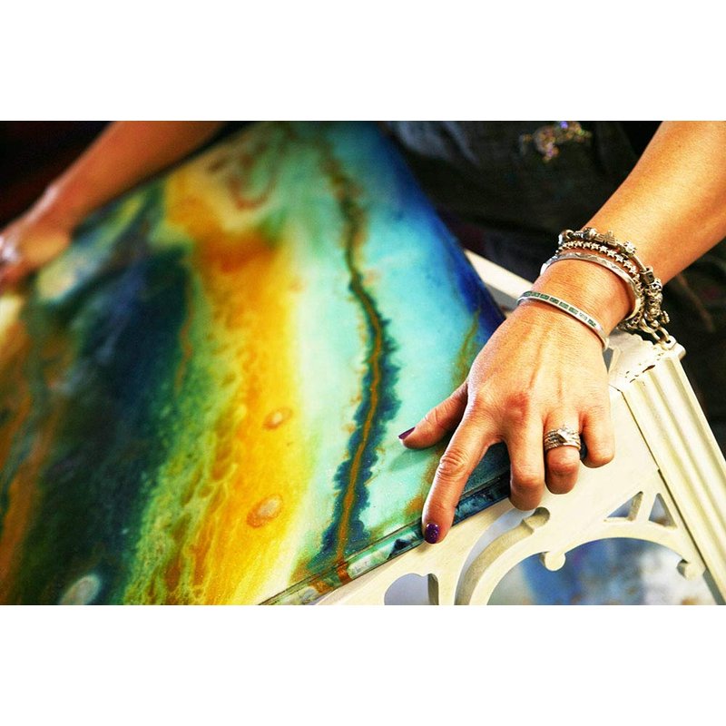 - Paint, gel stain and glaze in one! 10 vibrant colours! Jasmine scented
