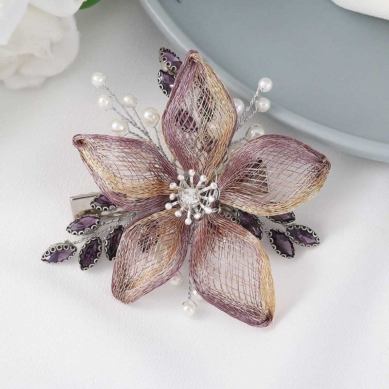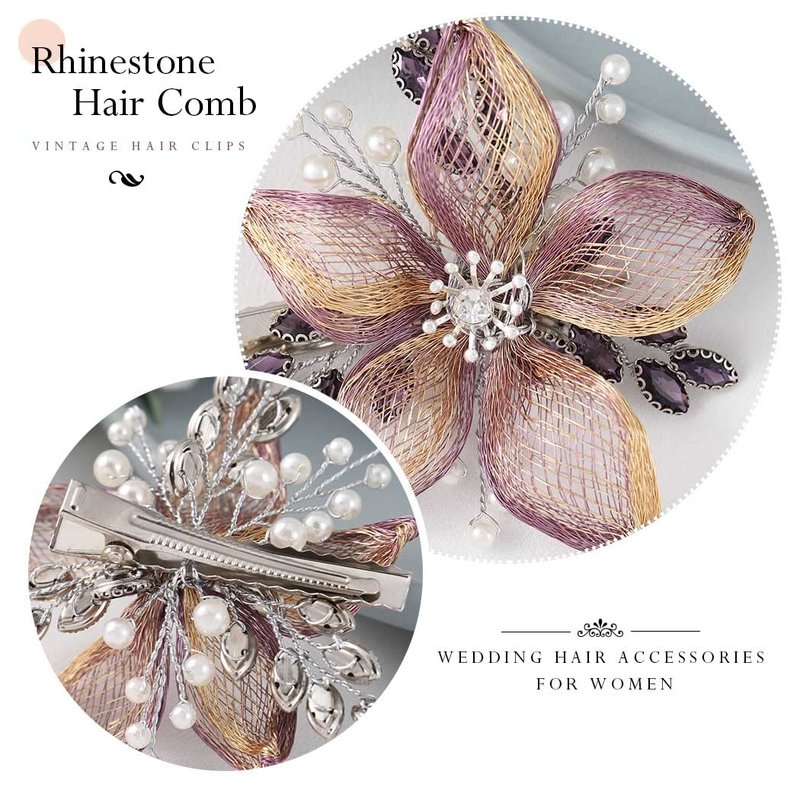 Unicra Purple Flower Bride Wedding Hair Clip Silver Bridal Hair Piece Crystal Hair Pin Rhinestone Bridesmaids Hair Accessories Pearl Prom Hair Jewelry for Women and Girls